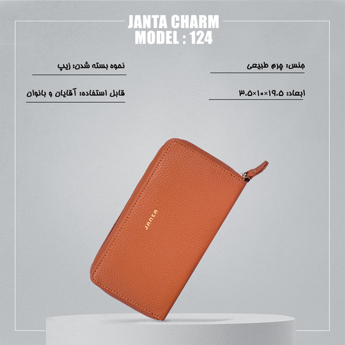 پس از پدید آمدن کارت‌های اعتباری و اسکناس‌ها، استفاده از کیف پول‌ها برای حمل راحت‌تر کارت‌ها رواج پیدا کرد. این محصولات، از مهمترین اکسسوری‌ها هستند که برای ایجاد یک استایل خاص در افرادی که به مد اهمیت می دهد به شمار می رود. یک کیف پول با رویه‌ای فلوتر و فرم دستی که برای استفاده روزمره انتخابی ایده‌آلی خواهد بود. این کیف دو فضای مخصوص نگهداری اسکناس دارد. وجود چندین جای مخصوص نگهداری کارت اعتباری و یک محل نگهداری خودکار یعنی فضای کافی برای سروسامان دادن به انواع وسایل شخصی. این کیف پول با داشتن یک جیب زیپ‌دار مخصوص نگهداری اشیا کوچک و سکه، کوچک‌ترین جزییات و نیازهای روزمره را هم در نظر گرفته است. ابعاد این کیف 19.5 × 10 × 3.5 سانتی‌متر است. کیف پول چرم مدل 124 به نوعی طراحی شده که برای استفاده روزمره آقایان و خانم‌ها مناسب است. این کیف مانند سایر محصولات برند خوش‌نام جانتا از چرم طبیعی تهیه شده است. لوگوی برند جانتا روی پلاک فلزی نقره‌ای حک شده و بدون آشفتن ظاهر کیف روی آن پرچ شده و متضمن کیفیت و مرغوبیت این کالا خواهد بود.