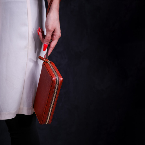 سایر توضیحات طول: 19.5 سانتی متر • عرض: 10 سانتی متر • ارتفاع: 3.5 سانتی متر - به همراه محل قرار گیری سوزن و دو عدد سیم کارت - بند مچی چرمی جهت نگهداری راحت و ایمن - محل نگهداری حداقل دو عدد گوشی موبایل - محل نگهداری انواع اکسسوری موبایل - محل نگهداری سویچ ماشین و یا ایرپاد - دارای بسته بندی شیک جهت هدیه - محل نگهداری سکه و اقلام کوچک - محل نگهداری یک عدد پاوربانک - سرزیپ از جنس چرم طبیعی